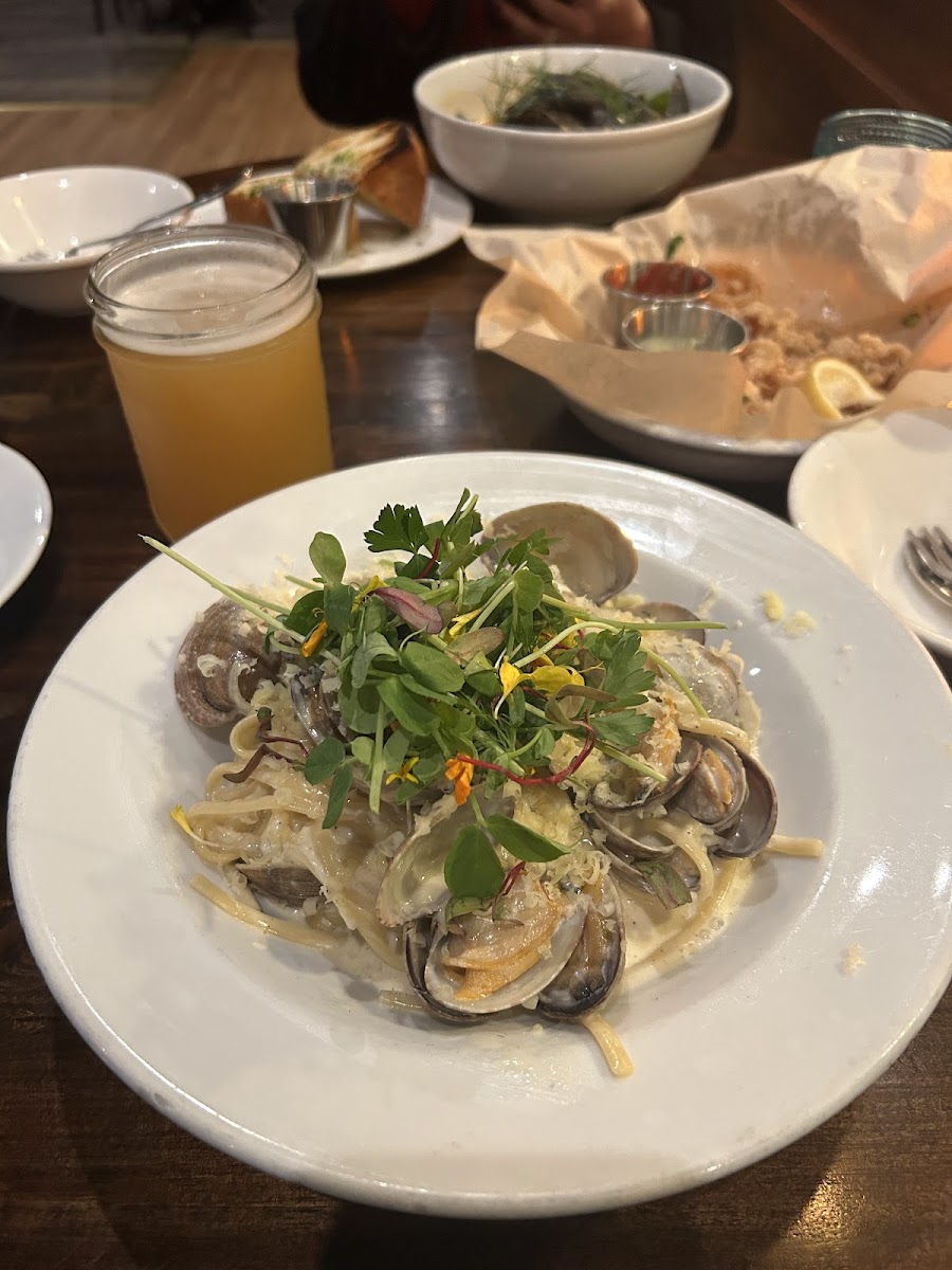 But the menu at Rocker Oysterfeller's At The Wharf goes far beyond just oysters. One of the standout dishes is the clam chowder, served in a sourdough bowl. It's creamy and packed with tender clams, making it the perfect dish for a chilly day by the water. The restaurant also offers an array of other seafood options, including fresh fish, crab cakes, and shrimp dishes, all prepared with a focus on flavor and quality.